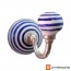 - Gancho em metal e cerâmica decorado com círculos azuis, nas dimensões A8 x D6 cm. Com fino acabamento, é ideal para aproveitamento e organização de espaços, podendo ser colocado atrás das portas ou até mesmo na fabricação de móveis, restaurações de móveis antigos ou demolição. Usado em todos os tipos de ambientes da casa ou escritório.