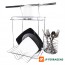 Conta com uma tela superior pra copos ou similares, uma tela inferior que tem a capacidade para 6 pratos e um cesto porta talheres.